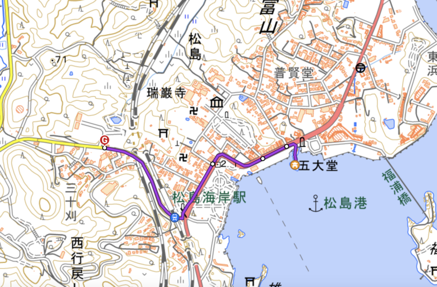 *モデルコースは、松島海岸駅-五大堂 往復コースになっています。瑞巌寺を通るコースは以下を参照してください。
