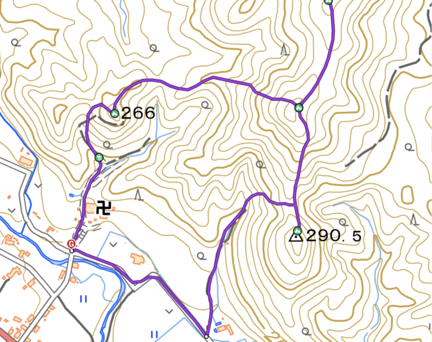 素朴な石仏を過ぎると三等三角点・小金山が設置された山頂。周辺にはカタクリの自生地もあり、早春にも訪れたい山です。ここから遊歩道はさらに手倉森山(210m)・トンガリ山(221m)へと続きます。時間と体力に余裕があれば、足を延ばしてみても良いでしょう。