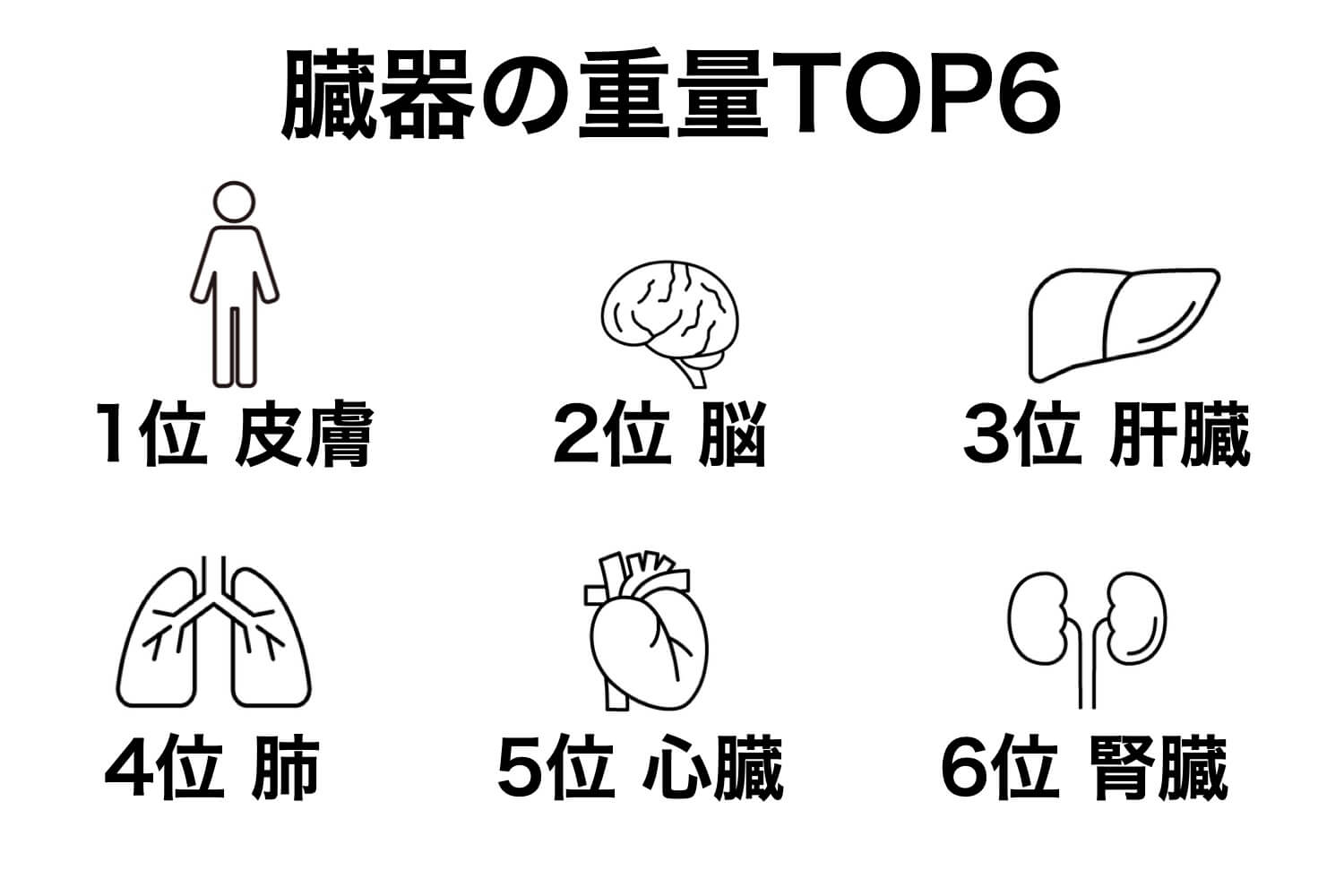 成人の臓器のうち重量が大きいものを順に並べた。個人差があるため、順位は変動する場合がある(編集部調べ)
