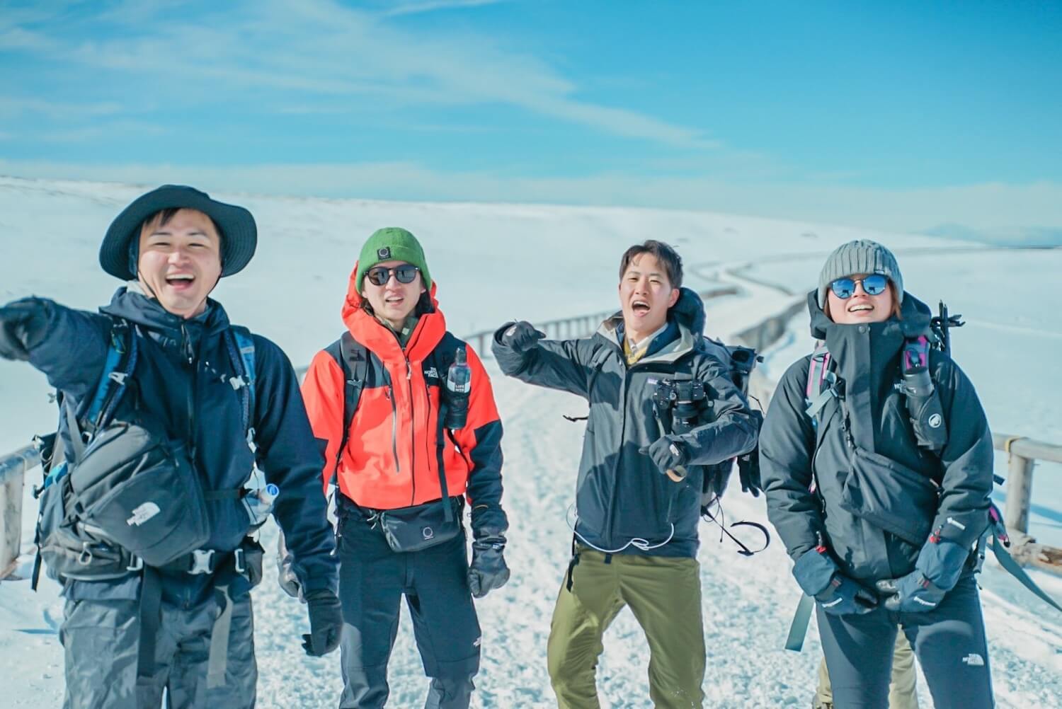3年前の冬に仲間と登った雪山。左から三番目が愛澤