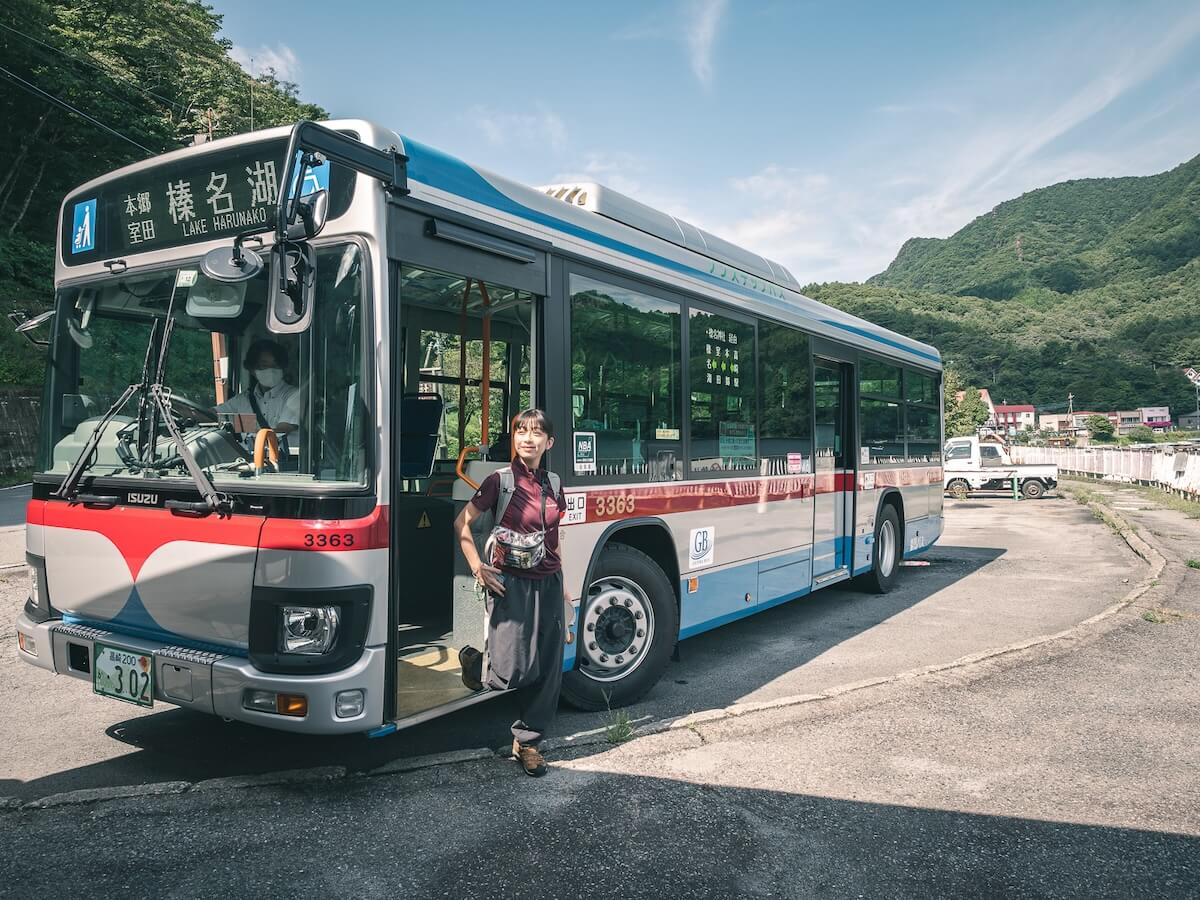 JR高崎駅西口から登山口近くの榛名湖バス停までの所要時間は約1時間25分。車窓から見える風景は、街並みから緑豊かな山あいへと変わっていき、ミノリさんのテンションもどんどんアップ。「もうすぐ山だ!」というワクワク感が高まります。