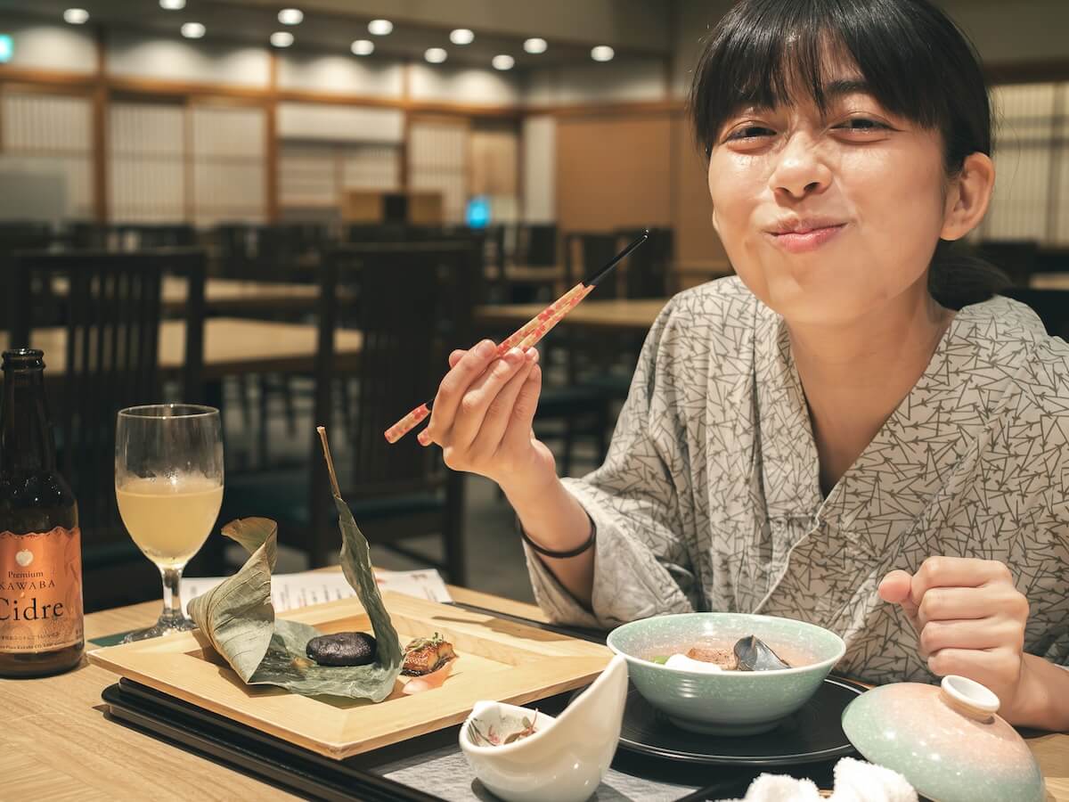 「ちょっと金色に濁ったお湯が気持ちよかったです。料理も本当に美味しくて、群馬ってこんなにおいしいものがあるんだ!って驚きました」とミノリさんも笑顔に。