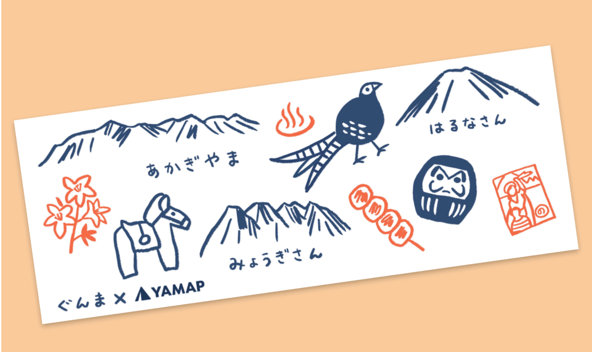 抽選で当たる手ぬぐいのモチーフは、上毛三山の稜線と遊び心あふれる群馬の名物