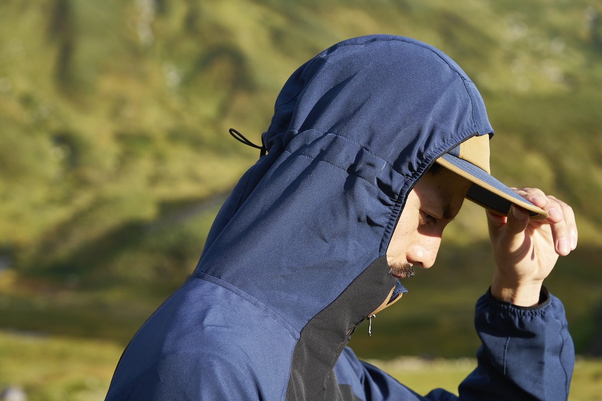 例えば、ドローコードで調整可能なフードは、非常にシンプルな造りです。フィット感が高く、バタつきづらいので、雨だけでなく、冷たい風を防ぎたい時にも有効です。