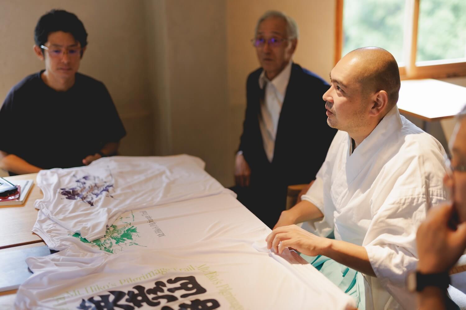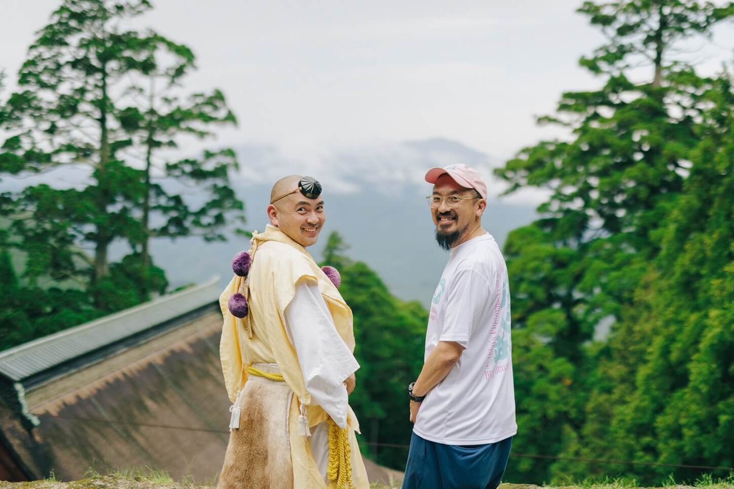 左から、英彦山神宮 禰宜の高千穂有昭さん、デザイナーの伊澤良樹さん