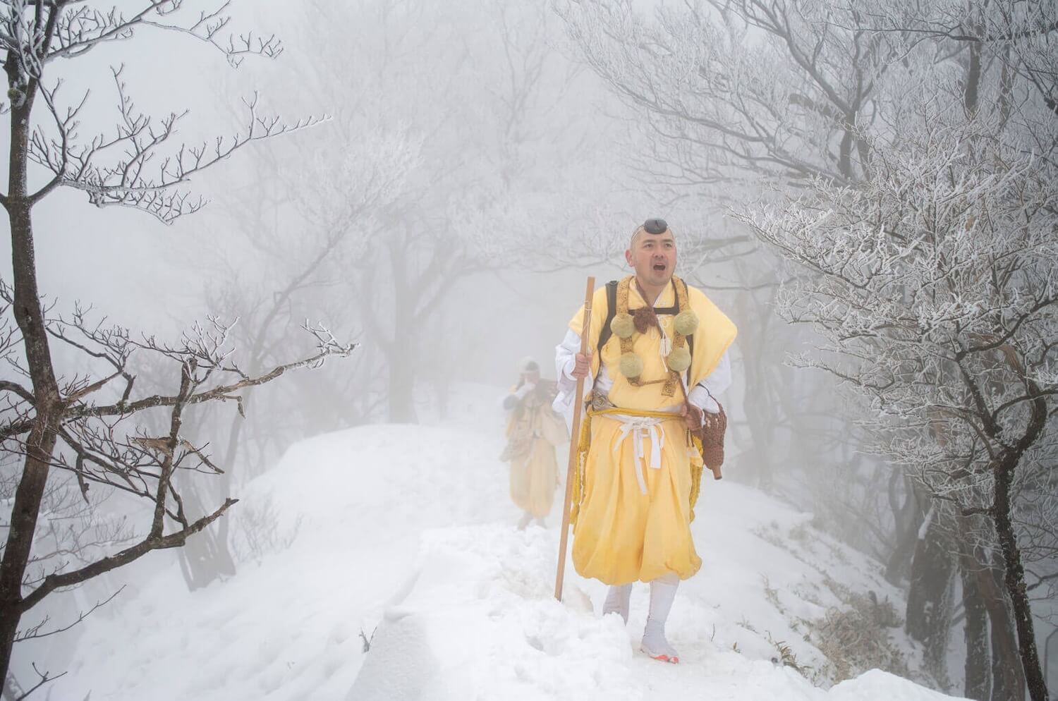 その道は、決して平坦ではありません。片道65km・往復130kmにわたる長さに加え、寒さや暑さも体力を奪います。また、修験者たちは、一般登山者が立ち入らない危険な山中にも分け入っていくのです。