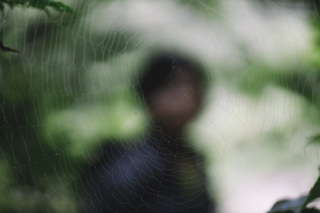 蜘蛛の巣が描く、水のレース。山と水のアート作品