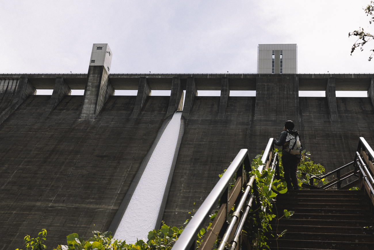 その上、天端(てんば)へは坂道や階段を登って行くことができます。足もとに感じるのは、ダムの堅牢さと、山の静けさが溶け合うような重み。
