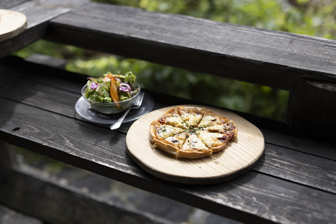 人気のピザランチは予約制。ただし、焼きたてのパンは店頭で販売されているので、ふらりと立ち寄っても大丈夫。ひと口頬張れば、森から里山へとつながるエネルギーが体いっぱいに広がります。
