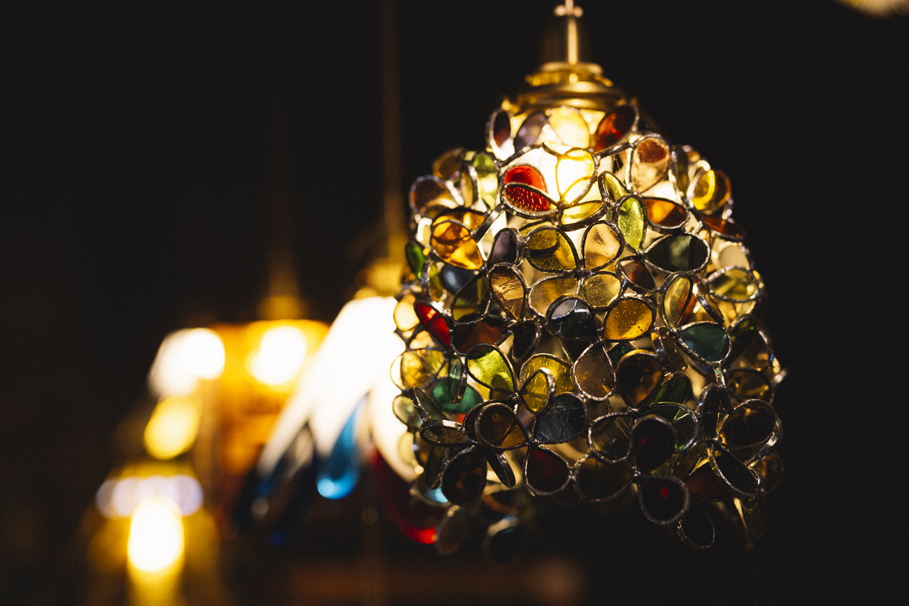 ギャラリーには、光を受けて輝くランプやパネルが並びます