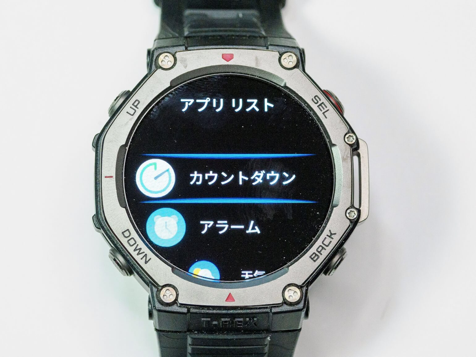 「カウントダウン」という機能をトップに配置しています。設定した時間が経過するとバイブレーションで教えてくれるというものです。これ、個人的に使用頻度が非常に高く、とりわけ、カップラーメンの待ち時間を測るにはもはや欠かせません。「もう3分たったかな」と何度も時計を確認する必要はなく、バイブレーションが振動するまでただ放置していればいいのですから。この便利さは使ってみればわかるはず!