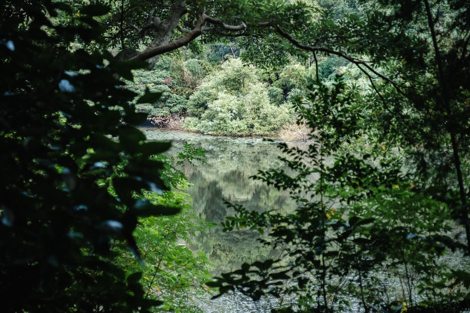 そこから10分ほど歩くと、見えてきたのは「内野池」という小さな池。頬を撫でる風や、水の音、鳥のさえずりが聞こえ気分は上々です。