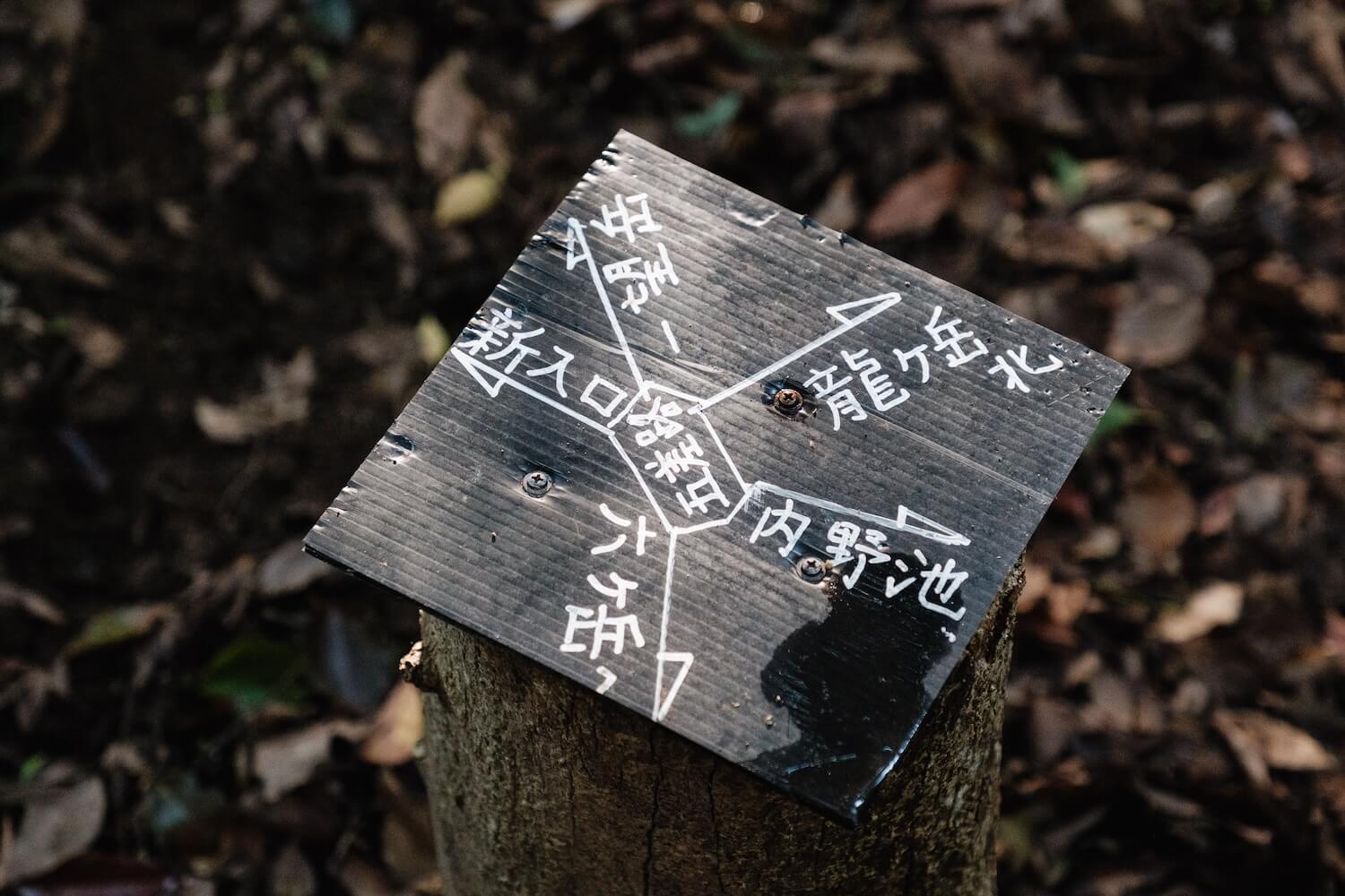見やすい工夫を凝らした五差路の道標。見やすい工夫を凝らした五差路の道標。龍ヶ岳北峰直下には名物「龍の右脚」があります