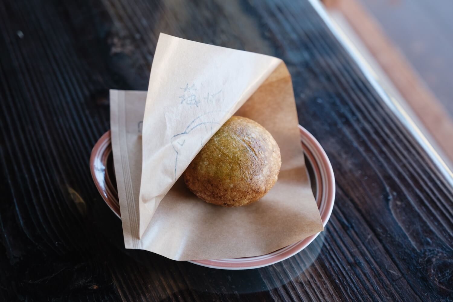 食後は、揚げたてピース饅頭を手土産に購入。グリーンピースが練り込んであり、モチモチの食感がクセになる昔懐かしい味です。