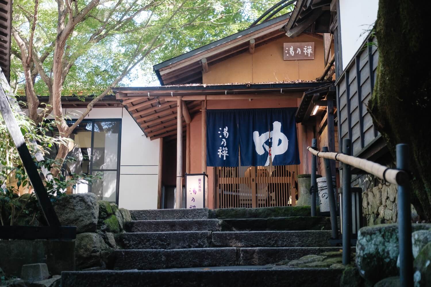 山行でかいた汗を、ここでしっかり洗い流してリフレッシュさせます。「湯乃禅の里」の湯は、肌に優しいアルカリ性単純泉。男女合わせて9種類の露天風呂、食事処、サウナ・ボディケア、家族風呂などがあり、1日中ここで過ごすことも。旅に余白時間が出たら、プラスで計画するのに使いやすいスポットです。