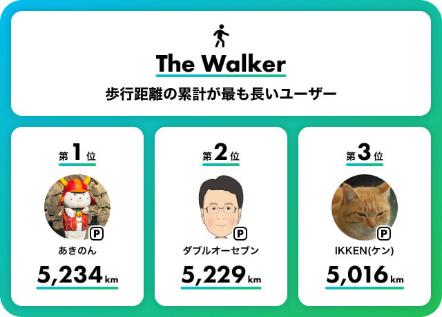 歩行距離の累計が最も長いユーザー「The Walker」に選ばれたのは、東京を拠点に活動するあきのんさん。