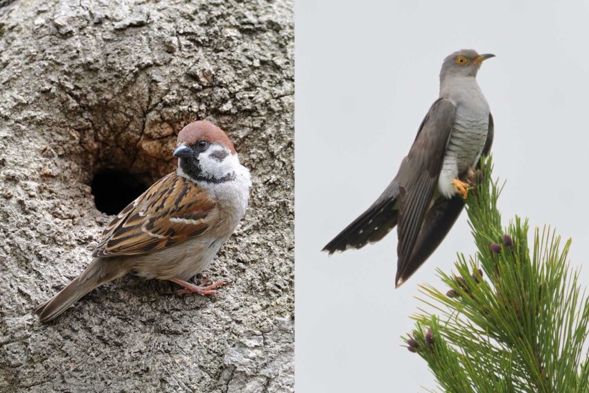 カッコウ(右)もスズメも鳴き声が和名の語源由来