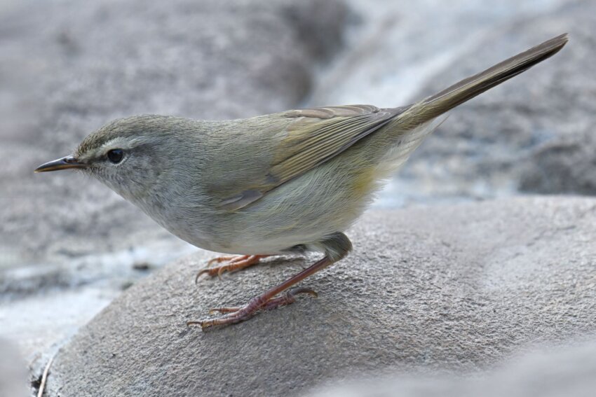 鮮やかな黄緑色はメジロの色であり、ウグイスは写真からもお分かりのように褐色系の灰色と表現するのが的確でしょう。部分的にはわずかに緑色みを帯びているように見えることもありますが、うぐいす餅のような鮮やかな色ではありません。