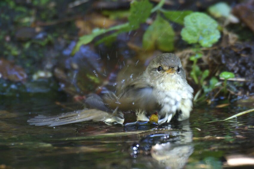 ウグイスの後ろ姿。翼のあたりにわずかに緑色みが感じられるかもしれないが、うぐいす餅の色とは明らかに違う