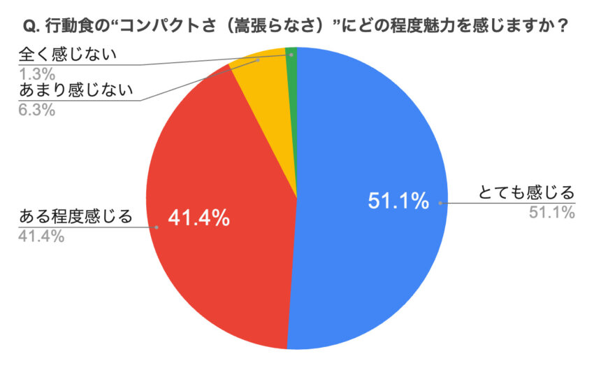 YAMAPユーザーアンケートでも、 行動食の「コンパクトさ」に魅力を感じている方は9割以上(92.5%)でした。