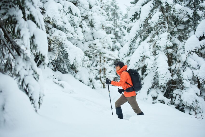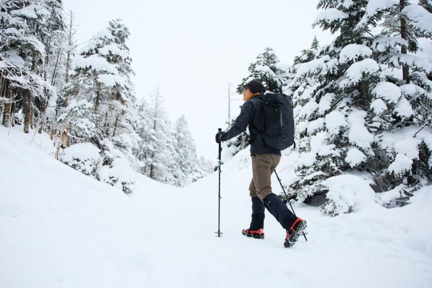 冬山では、安全のために削れない装備が増え、バックパックは自然と重くなります。