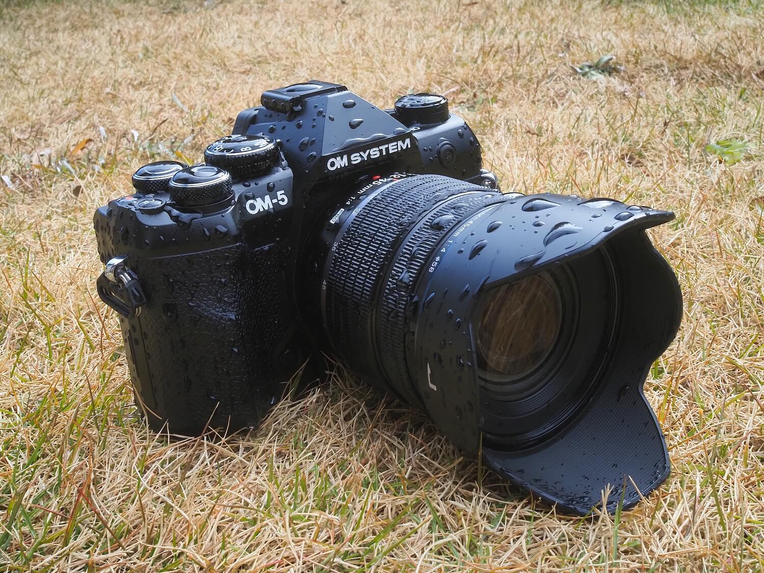 『OM-5 MarkⅡ』に『M.ZUIKO DIGITAL ED 12-45mm F4.0 PRO』をセットした様子。カメラ・レンズともに防塵・防滴性能を備えているので、雨に濡れても安心のタフさ