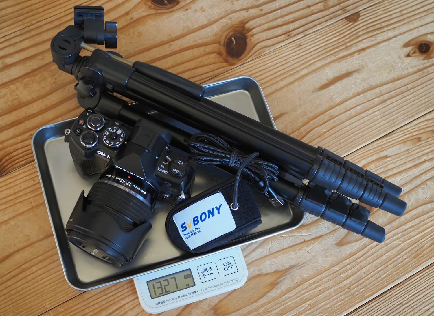 ちなみに、カメラとレンズ、三脚とレンズヒーターを合わせた重さは1,327g(カメラ・レンズ:672g /レンズヒーター:58g/三脚:597g)。これなら登山に持っていくのも苦にならない。