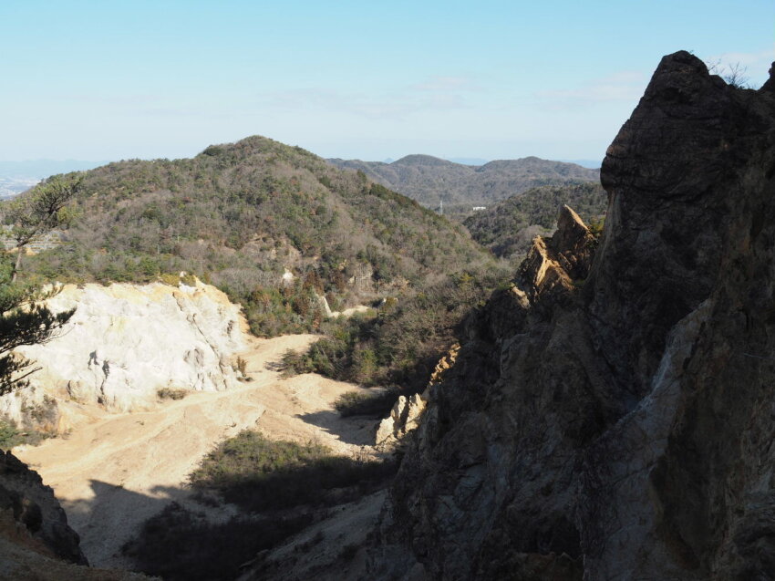 古くは豊臣秀吉が大坂城の築城の際に石を切り出した歴史があります。採石場跡には、楔(くさび)の跡が残る岩を見ることができます。