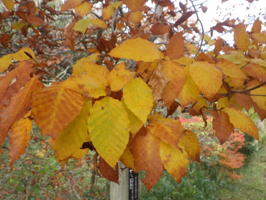 350種が生育するという樹木の中では、ブナとイヌブナの両方が観られることが特筆されます。ブナは標高700m以上に点在するが、六甲山系全体で約130本しか残っていません。裏六甲では紅葉谷で、表六甲では石宝殿周辺にみられます。