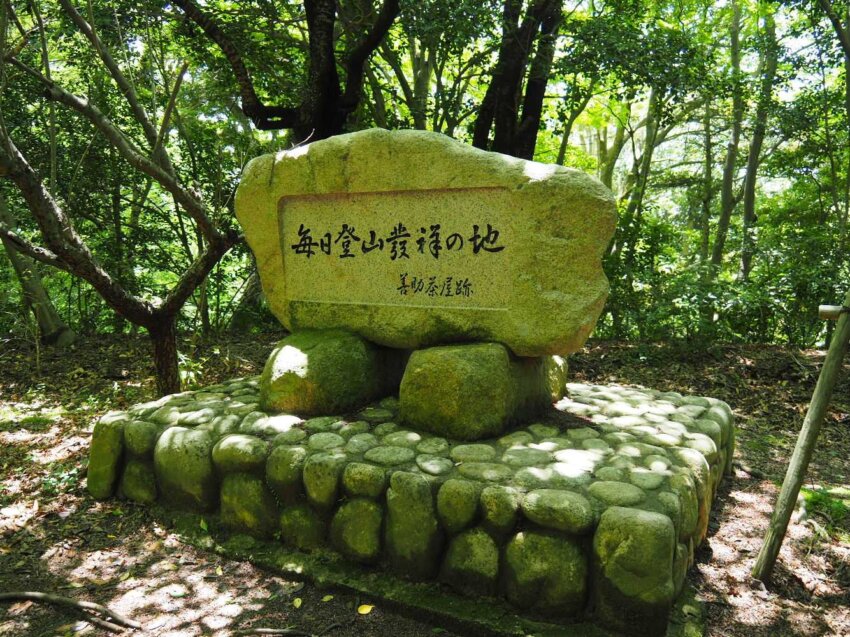 再度山(ふたたびさん、467m)の大龍寺参道、善助茶屋跡に立つ「毎日登山発祥の地」の碑