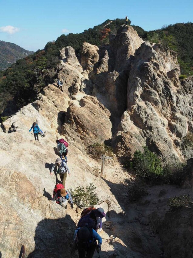 六甲山系の花崗岩は、固く安定した部分はロッククライミングに最適ですが、一方で、長い年月をかけて風化した花崗岩はマサ土(花崗岩が風化した砂状の土)と化し、滑りやすいザレ場も多くなっています。