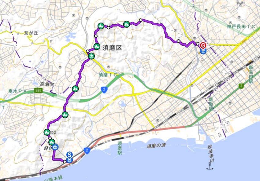 須磨浦公園駅~旗振山~鉄拐山~おらが茶屋~高倉台~栂尾山~横尾山~馬の背~東山~板宿駅