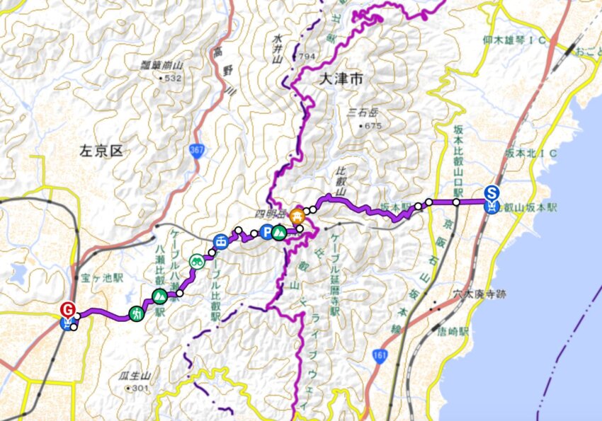 京都府と滋賀県の境にそびえる比叡山(848m)は、登山界の視点では、最高峰の大比叡と京都側の四明岳(しめいがたけ、837m)の2つのピークから成り立っています。しかし、比叡山は登山の対象として以上に、世界遺産・延暦寺が建つ仏道修行の霊山として有名で、広義にその境内を比叡山とよぶこともあります。