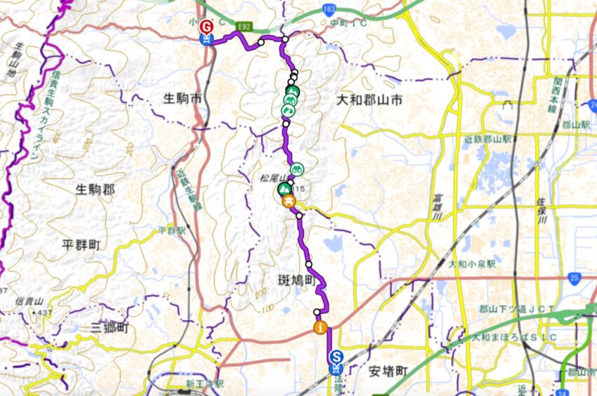 スタートは日本最古の木造建築である法隆寺、道中に日本最古の厄除霊場である松尾寺、東麓にはあじさい寺として有名な矢田寺と、古都の名刹が目白押し。