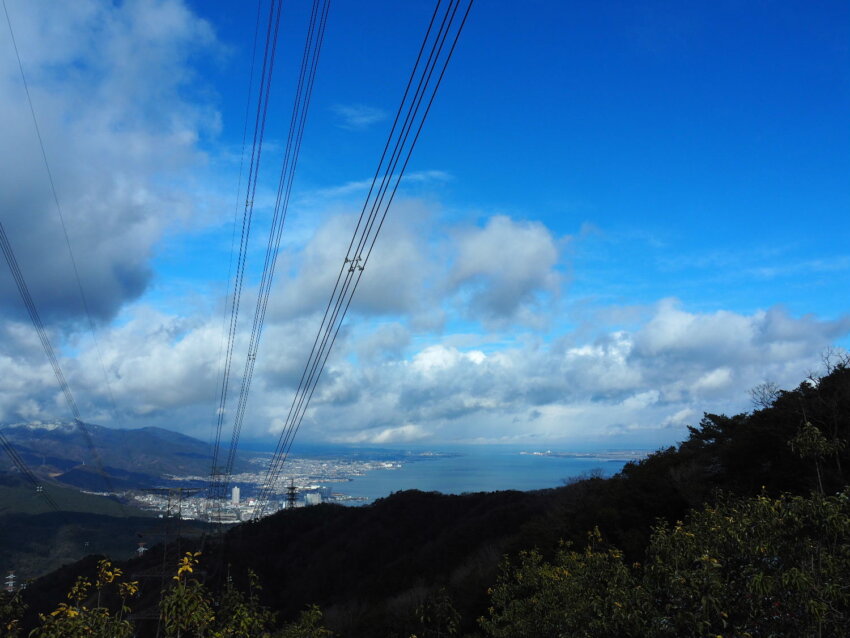 大比叡は展望に恵まれず、思いのほか地味なピークです。ビューポイントはガーデンミュージアム比叡(冬季閉鎖中)前の山頂駐車場。主に南側が開け、天王山、男山、淀川の流れ、生駒山、金剛山、そして大阪の高層ビル街まで望むことができます。