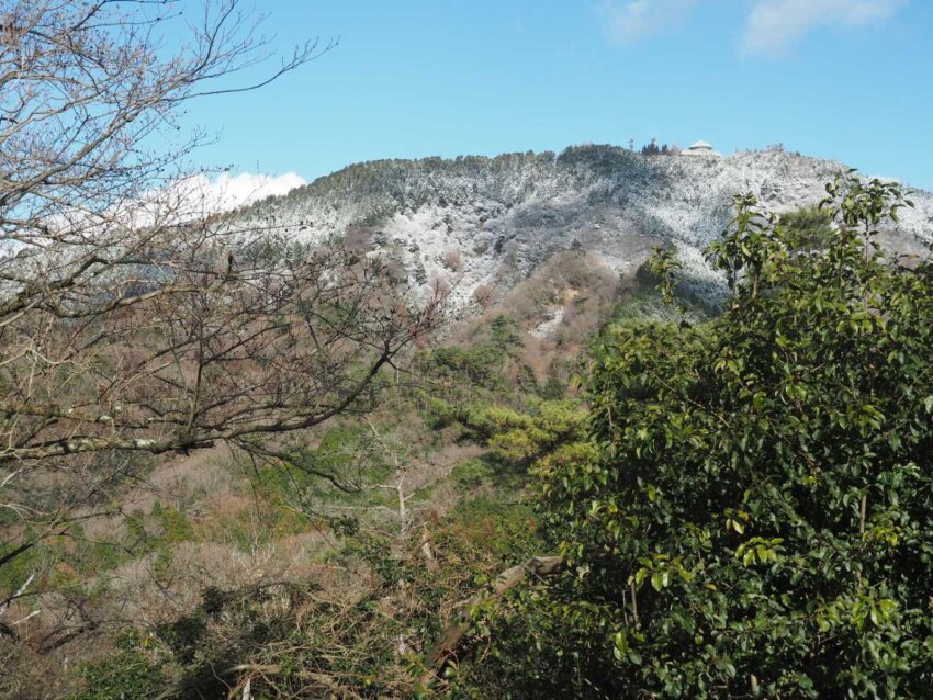 登山道は複数通っており、山科音羽川沿いに牛尾観音から登るルートや、京阪京津線・大谷駅から東海自然歩道をたどるルート、国分団地から石山寺に下山するルート、千頭岳から石山団地に下山するルートなど、いずれも冬場でも歩きやすいルートばかりです。冬季は積雪することもありますが、深くなることはまれで、根雪にもなりません。