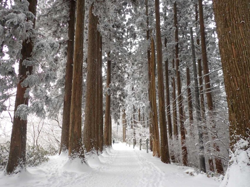 冬はたまに10cm程度の積雪がありますが、長く根雪になることはありません。スリップ防止のため、必要な区間のみ簡易アイゼンを装着すれば問題ないでしょう。本山寺では毎年1月3日に、神峯山寺は年明け最初の寅の日に合わせて、大護摩供と火渡り神事が行われています。