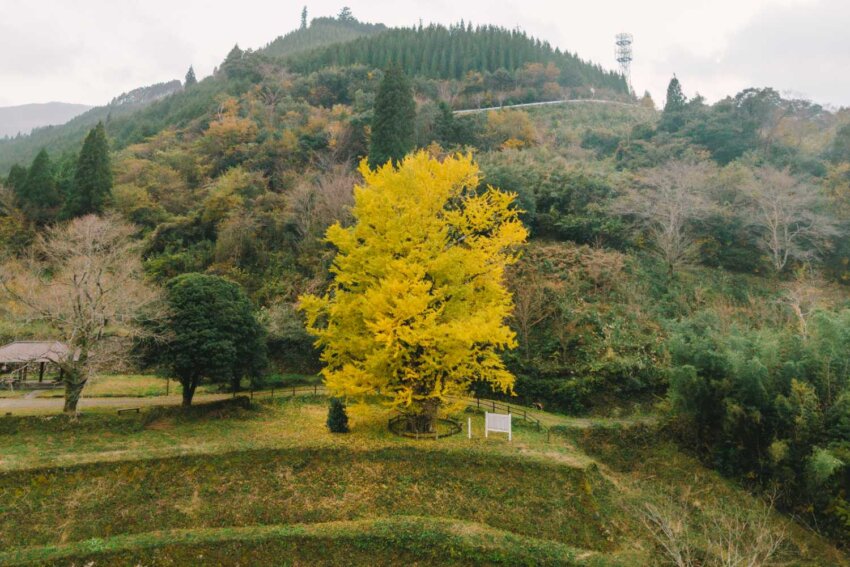 庄屋を務めた松岡家屋敷の大イチョウ。樹齢は700年以上