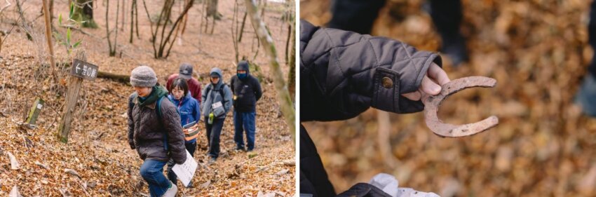 柳田は美郷町南郷区(旧南郷村)で借りた馬に乗り、松尾の庄屋で宿泊してから峠を越えたと伝えられています。森内さんからここで拾った蹄鉄を見せてもらい、研究者の醍醐味ともいえる発見の喜びを共有しました。