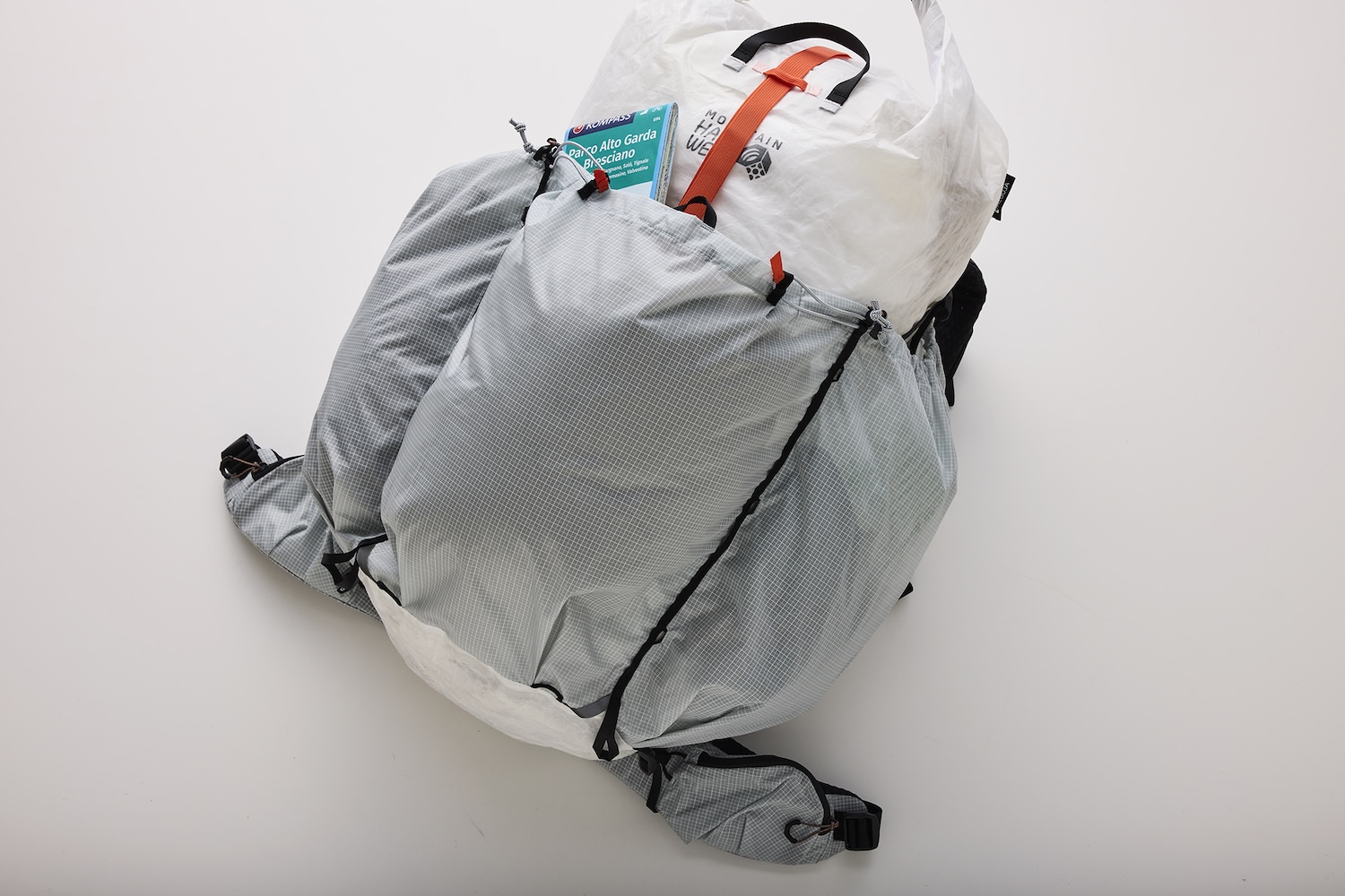 UL系バックパックではほとんど例のないこの仕様は、フラットな移動の多いロングトレイルハイキングよりも、急峻なアップダウンを繰り返すアルプスでの縦走のようなシチュエーションで、より効果を発揮してくれるディテールといえるでしょう。