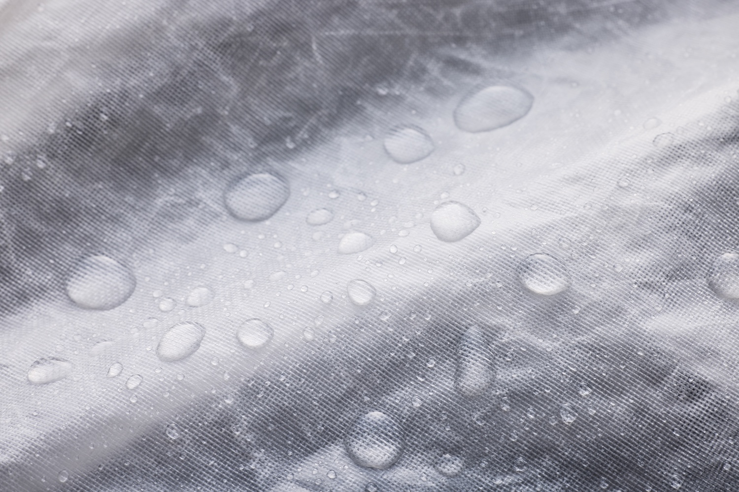 ダイニーマ系の素材に似た特徴を持っていますが、分子同士を結合させるボンディング加工によって形を作れるため、縫い目のない完全防水仕様に仕上げられること、修理が容易なことも特長です。また、レインカバーが不要なのも軽量化を図る上で大きな利点となります。