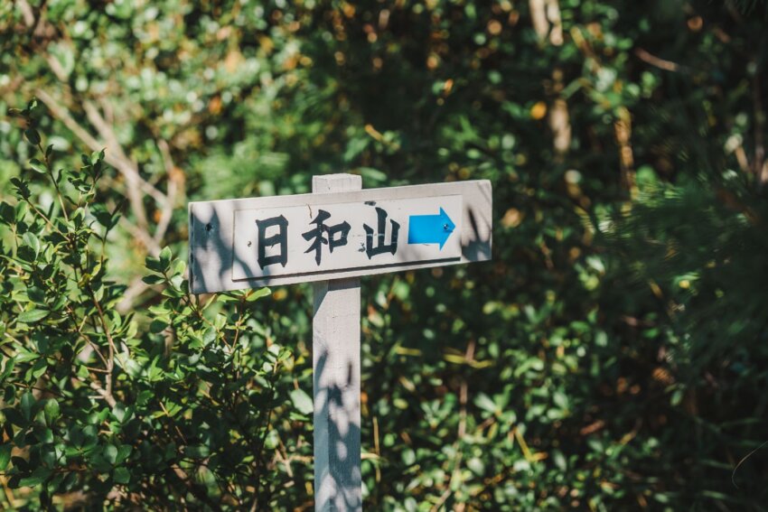 日和山の入口。豊かな植生と景色が楽しめるハイキングコース