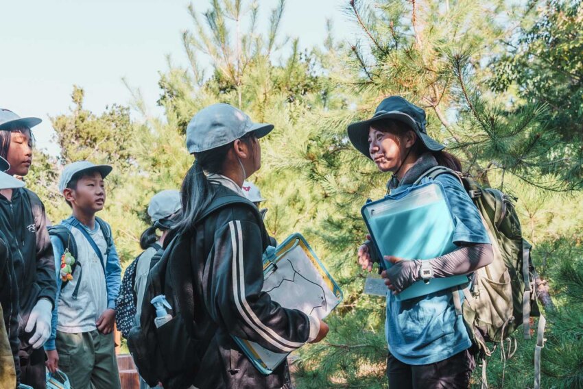 風光明媚なこの場所で行われているのは、紛れもなく学校教育の一環である。ただし、子どもたちを率いるのは「先生」ではなく、「インタープリター」と呼ばれる大人たちだ。